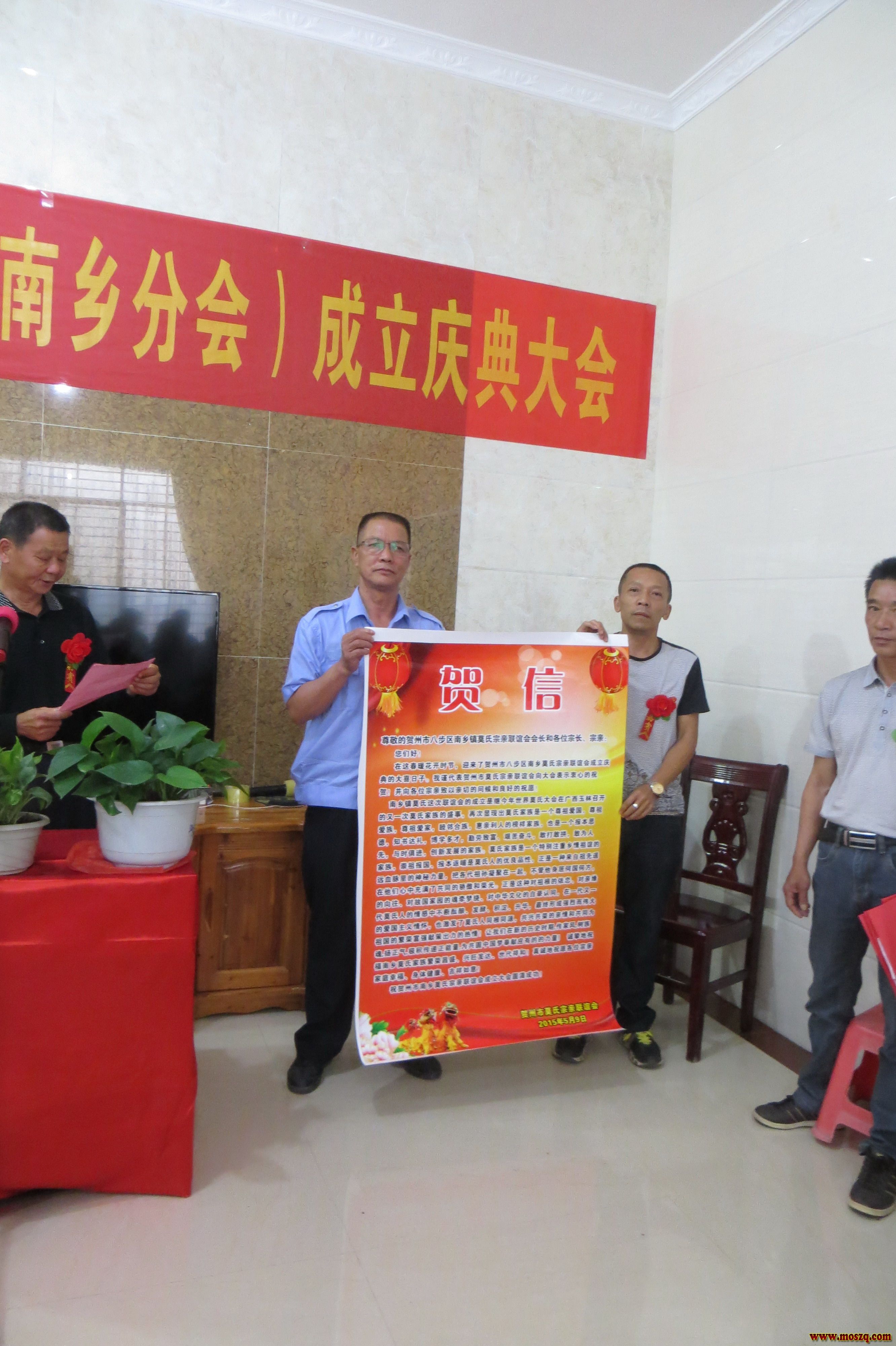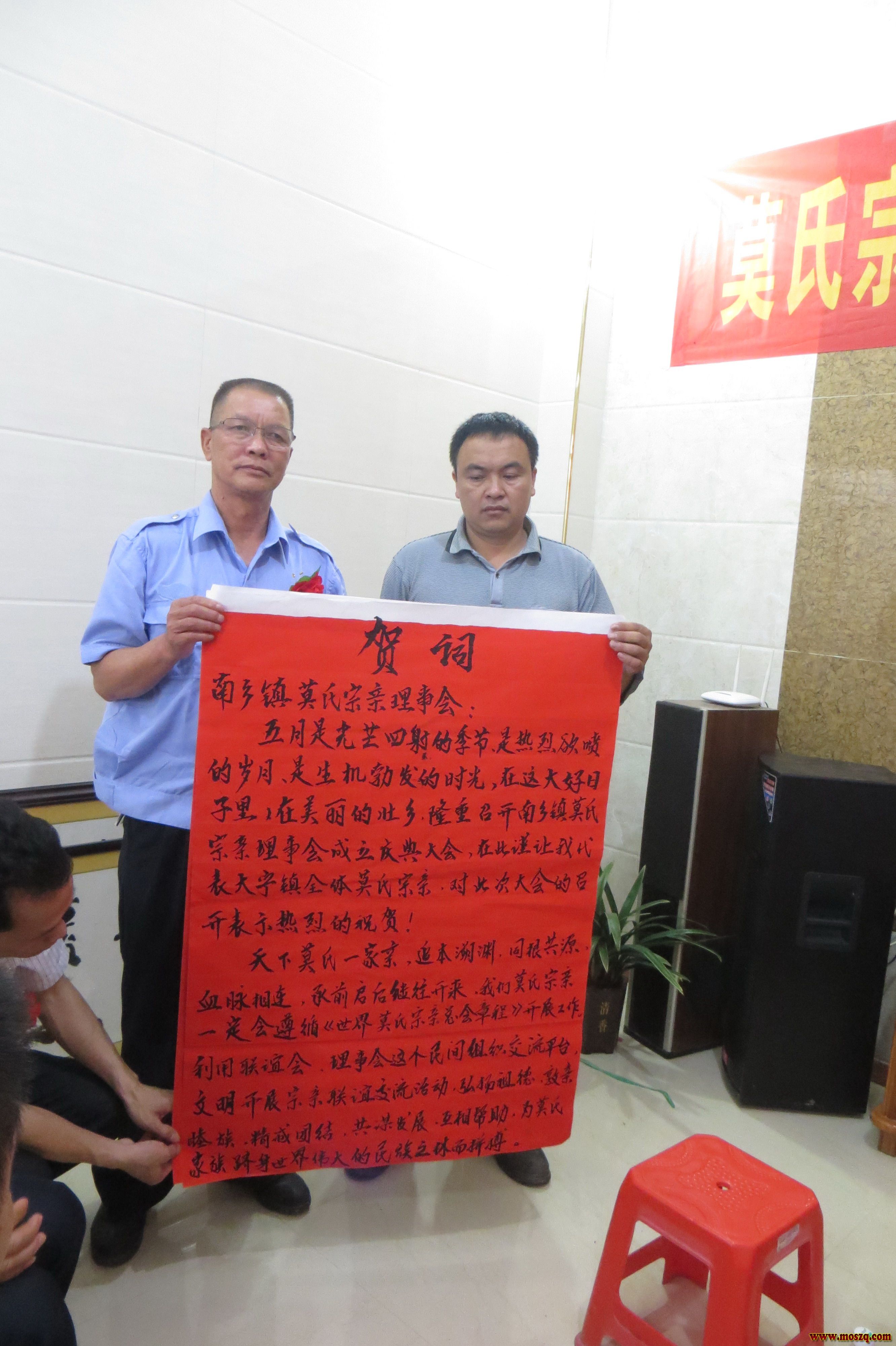 热烈恭贺南乡镇莫氏宗亲理事会成立,团结向上,前途辉煌!祝莫家的明天更辉煌!